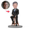 Male Boss Black Suit Sitting Custom Bobblehead with Engraved Text