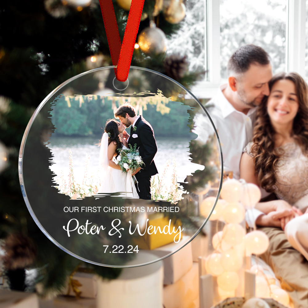 Personalized First Christmas Married Ornament with Photo Christmas Ornament Gift for Couples