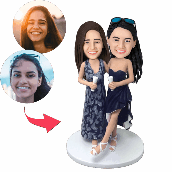 Same-sex Lady Couple Custom Bobblehead With Engraved Text